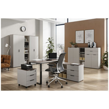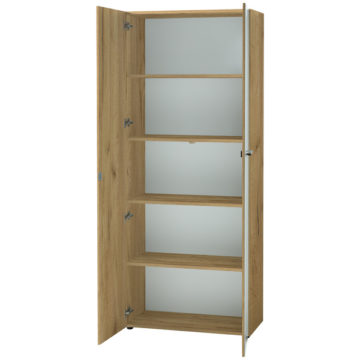 Uredski ormar se savršeno kombinira sa ostalima komadima namještaja iz kolekcije Monteria. Može se naručiti u običnoj bijeloj boji ili u lijepoj kombinaciji sa hrastom. Ima i kvalitetne prednje staklene ploče. Kromirane ručke nadopunjuju elegantan izgled. Uz to, ABS rubovi i melaminska smola, daju namještaju izuzetnu robusnost.