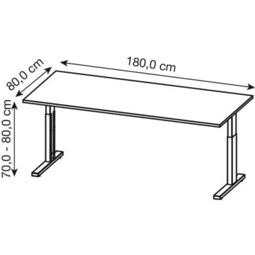 - Visina stola ručno je podesiva od 70 cm do 80 cm, što omogućuje prilagodbu radnog prostora prema individualnim potrebama.