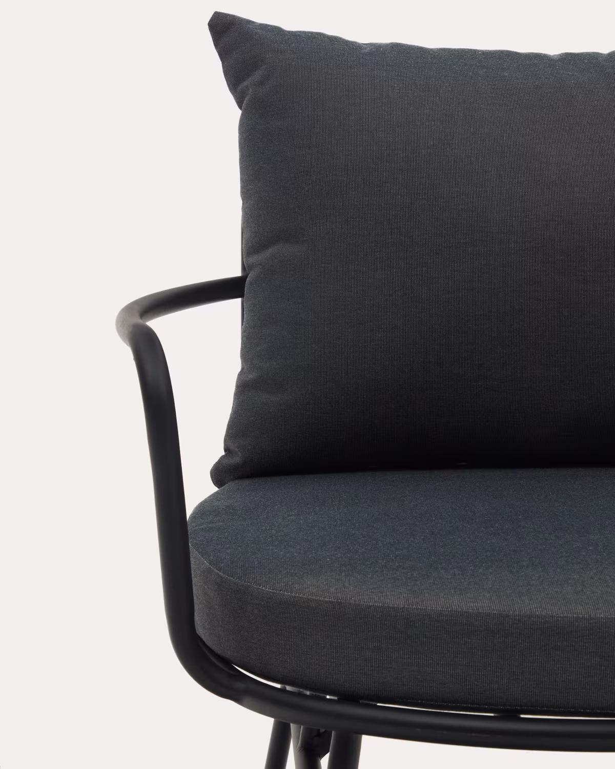 Vanjska fotelja Bramant od čelika u crnoj boji donosi moderan dizajn sa zaobljenim linijama koje prostoru daju eleganciju i karakter. Pogodna je za unutarnje i natkrivene vanjske prostore, gdje spaja estetiku i funkcionalnost.