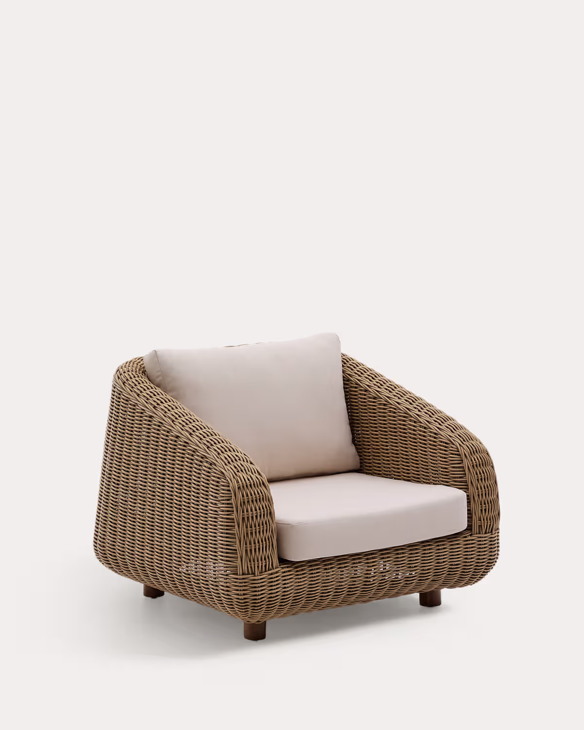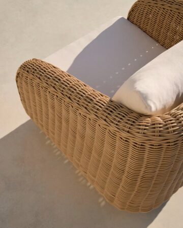 Vanjska fotelja Meria od sintetičkog ratana s nogama od masivnog akacijevog drveta spaja prirodan izgled, udobnost i praktičnost za korištenje u unutarnjim i vanjskim prostorima. Zaobljene linije i otporni materijali stvaraju ugodan i bezvremenski ambijent.