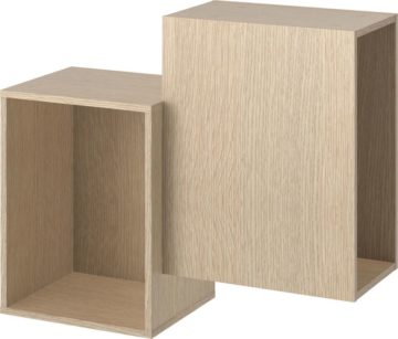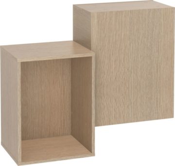 Zidna polica je izrađena od iverice i zaštićena je melaminskom zaštitom. Ima dvije jedinice za pohranu. Polica je boja hrasta. Dimenzije (dužina x dubina x visina): 65 x 25 x 54 cm.