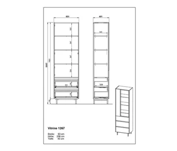 - Sveukupno: Š 63 cm x V 206 cm x D 40 cm.