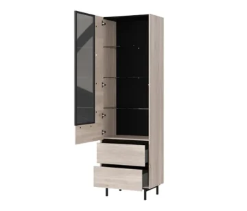- Elegantna vitrina s kombinacijom dvije ladice i vratima sa staklenim okvirom.