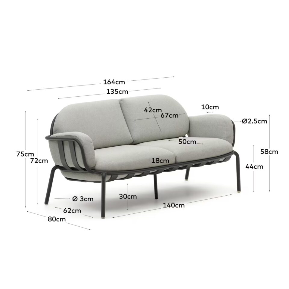 Prepustite se udobnosti i elegantnoj profinjenosti s vrtnom sjedećom garniturom Joncols, koja će vaš vanjski prostor pretvoriti u oazu opuštanja. Ovaj dvosjed dizajniran je za maksimalnu udobnost i stil, a istovremeno je iznimno izdržljiv i otporan na vremenske uvjete. Dostupan je u elegantnoj sivoj i svježoj zelenoj boji, što vam omogućuje da odaberete savršenu nijansu za vaš vrt ili terasu.