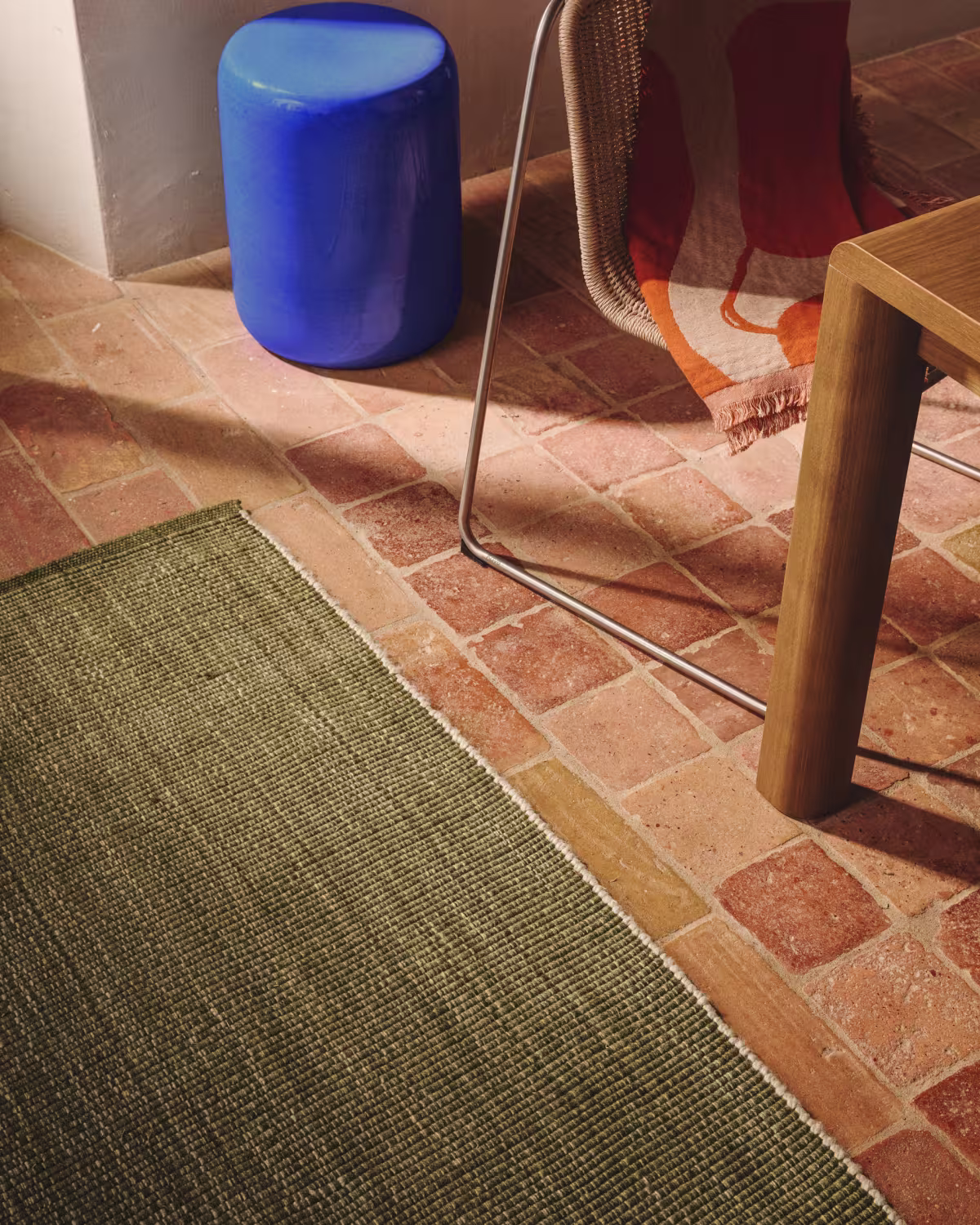 Tepih Tirla u zelenoj boji od recikliranih PET vlakana spaja održivost, funkcionalnost i ugodan osjećaj na dodir. Svojim jednostavnim, prirodnim izgledom prikladan je za unutarnje i vanjske prostore.