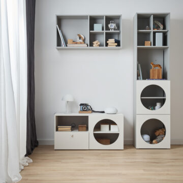 Zidna polica iz kolekcije Reli lako se uklapa u spavaću sobu, dnevni boravak ili sobu za mlade. Zahvaljujući mogućnosti personalizacije odabirom jedne od tri boje i četiri različita rasporeda fronti, možete je uskladiti s bilo kojim stilom opremanja. Prostrana unutrašnjost osigurava da će svi manji predmeti biti uredno pohranjeni.