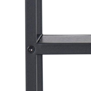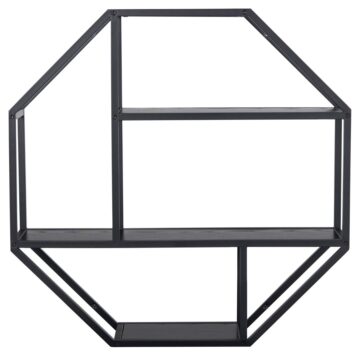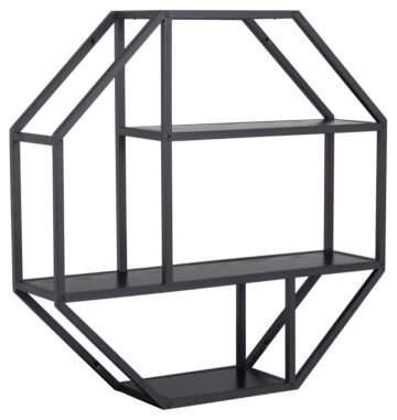 Stenski poličnik Seaford je osmerokotno oblikovan kos pohištva, ki će vašem prostoru dodati modernu i jedinstvenu notu. Metalni okvir od mat crnog prašno lakiranog čelika podržava četiri police u izgledu crnog pepela, stvarajući zanimljiv i funkcionalan komad namještaja koji će se istaknuti na svakoj zidu. S asimetričnim rasporedom polica, idealan je za izlaganje vaših omiljenih predmeta i osobnih dekoracija.