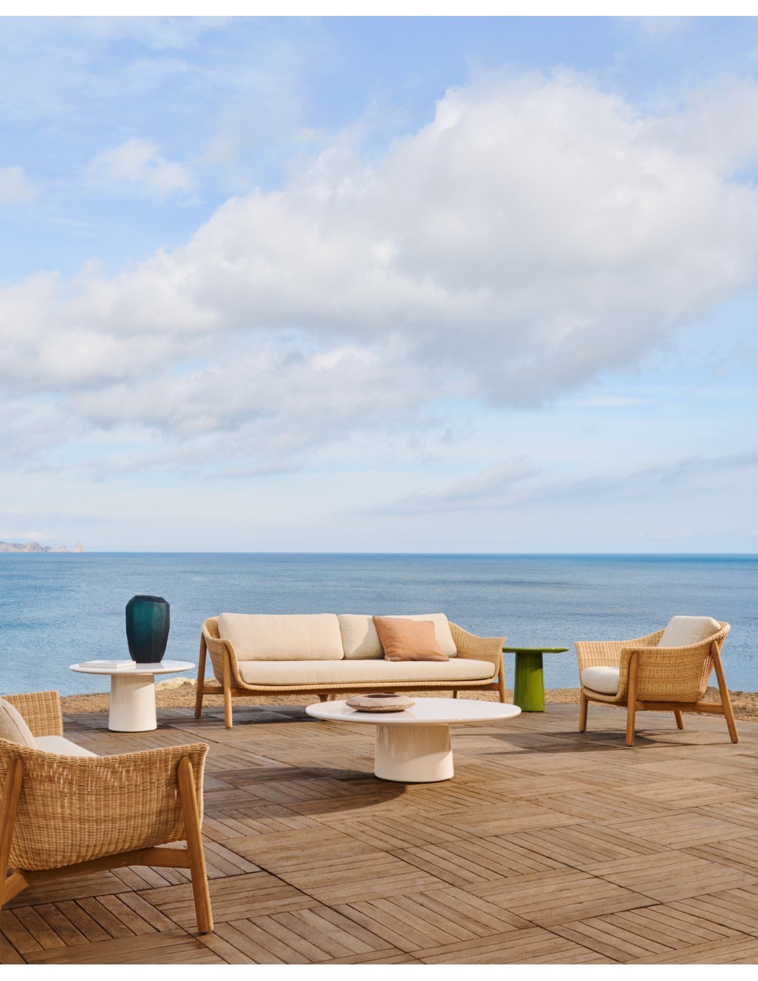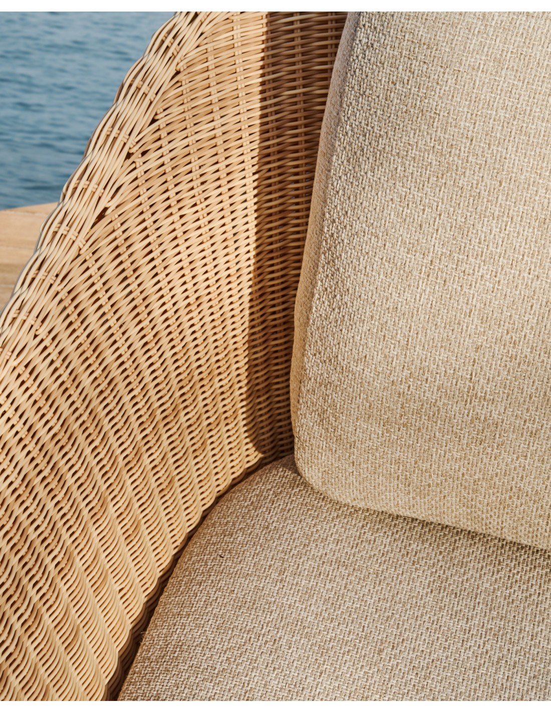 Galea združuje toplino masivne tikovine in ročno pletenega sintetičnega ratana v kolekciji, ki povezuje občutek tradicije s sodobno funkcionalnostjo. Dvosed izstopa z uravnoteženimi linijami, lahkotnim videzom in naravnimi materiali, zato ustvarja umirjen in eleganten ambient tako na terasi kot v notranjih prostorih.