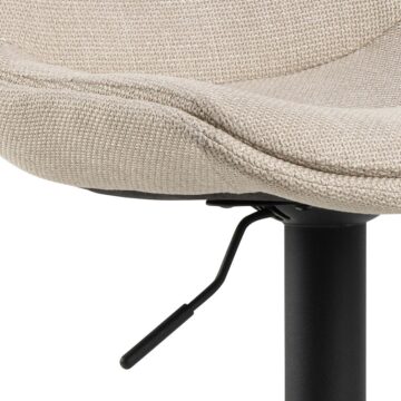Barski stol Adisa je zasnovan z mislijo na sprostitev in udobje, kar ga naredi popolno izbiro za uživanje ob pijači ali hitrem prigrizku doma. Ta sodoben barski stol je oblazinjen v strukturirano tkanino Basel v bež barvi (24), ki mu daje eleganten in prefinjen videz. Sedež v obliki črke L je poudarjen z vodoravnimi šivi, ki dodajajo estetski pridih. Stol je opremljen z vrtljivo funkcijo in plinskim dvigalom, ki omogoča enostavno nastavitev višine sedeža za maksimalno prilagodljivost. Črno grobo prašno lakirano jekleno podnožje v obliki trobente zagotavlja trdnost in stabilnost ter vključuje oporo za noge, kar povečuje udobje med sedenjem.