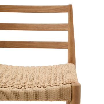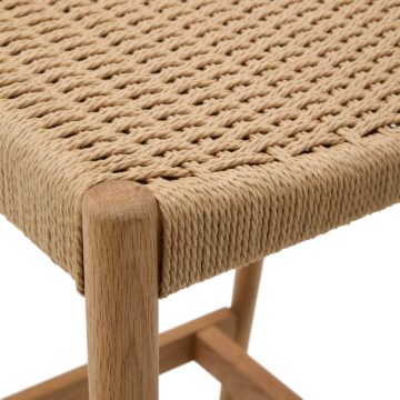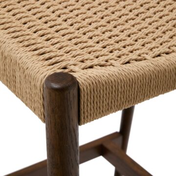 Predstavljamo vam Leseni barski stol Analy, ki v vaš dom prinaša naravni šarm in rokodelsko izdelavo. Stol se ponaša s trpežno konstrukcijo iz masivnega hrastovega lesa in sedežem iz ročno pletene vrvi. Zbirka Analy je zasnovana tako, da naravo pripelje naravnost v vaš dom.