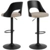 Barski stol Lucy združuje sodoben občutek s klasično skandinavsko estetiko, kar se odraža v njegovih prefinjenih podrobnostih in vrhunski funkcionalnosti. Stol se ponaša z zaobljenim naslonom iz črno luženega hrastovega furnirja z odprtim hrbtom ter oblazinjenim sedežem v peščeni barvi, ki ustvarja eleganten in topel videz. Stoji na mat črnem trobentastem podnožju iz grobo prašno lakiranega jekla, ki omogoča vrtenje in prilagoditev višine s pomočjo plinskega dvigala, kar zagotavlja dodatno udobje in prilagodljivost.