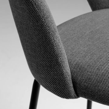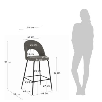 Kovinski barski stol Mahalia lahko naročite v treh različnih barvah in sicer: svetlo sivi, temno sivi in rumeni tkanini visoke kakovosti. Tkanina je zelo odporna in preprosta za čiščenje (Easy clean), samo z vodo, brez uporabe dodatnih kemičnih čistil. Ogrodje barskega stola je kovinsko, barvano v črno barvo. Dobavljive barve: