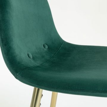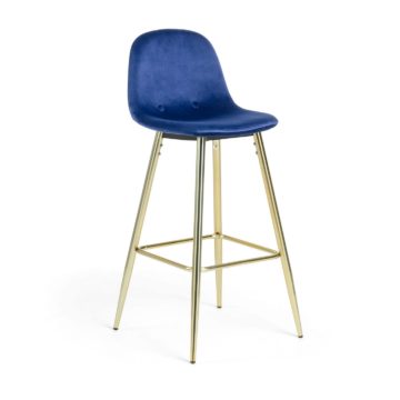 Vintage dizajn barskega stola Nilson se manifestira v kombinaciji zlatega podnožja in kakvostne žametne tkanine. Nogice so izdelane iz jekla. Tkanina je dobavljiva v živahni zeleni in kraljevi modri barvi. Dimenzija (višina x širina x globina): 101/47/48 cm Teža: 5,4 kg