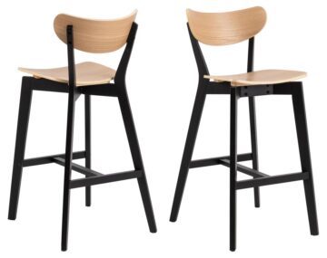 Barski stol Roxby prinaša svežo energijo v vsak dom z izrazitim dizajnom, ki združuje retro občutek s sodobno estetiko. Ta stol izstopa s svojim kontrastnim videzom, kjer se elegantno prepletata lakiran hrastov furnir na sedežu in naslonjalu ter mat črno lakirano leseno podnožje iz kavčukovega lesa. Stol nudi udobno sedenje z zaobljenim sedežem in ukrivljenim naslonjalom, ki omogoča sproščeno naslanjanje. Oporo za noge dodatno prispeva k udobju, kar omogoča sproščeno in udobno sedenje.
