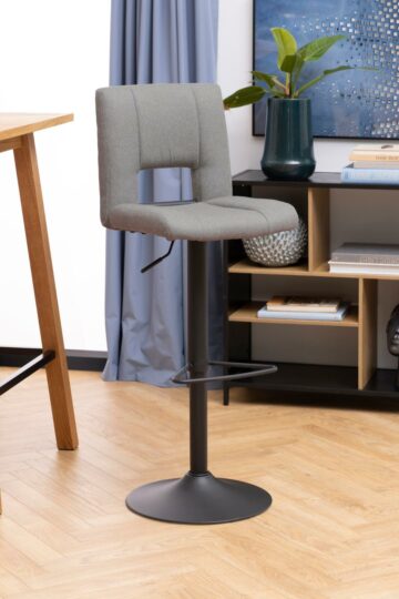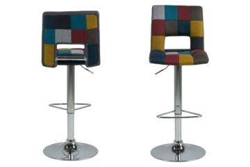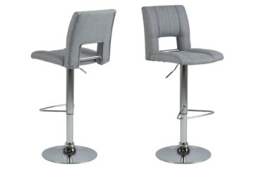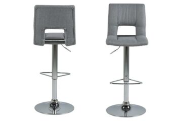 Kovinski barski stol je dostopen v kar 4 barvnih različicah – svetlo sivi, temno sivi in pisani. Stol s svetlo sivim sedežem je dostopen tudi s črnim podnožjem.