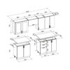 - Viseče omarice od leve proti desni: omarica z dvojimi vrati širina 80 cm, omarica za napo širine 60 cm, omarica z enojnimi vrati 40 cm, omarica z enojnimi vrati 60 cm, višina 72 cm, globina 32 cm.