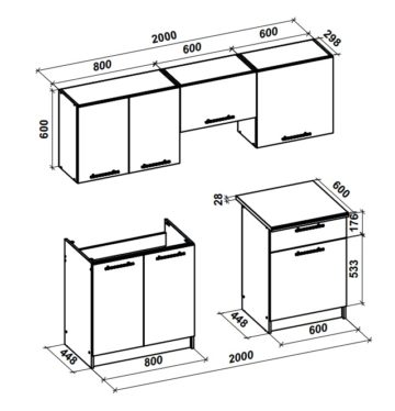 Blok Kuhinja MARIJA je dolžine 200 cm. Kuhinja je izdelana iz oplemenitene iverne plošče.