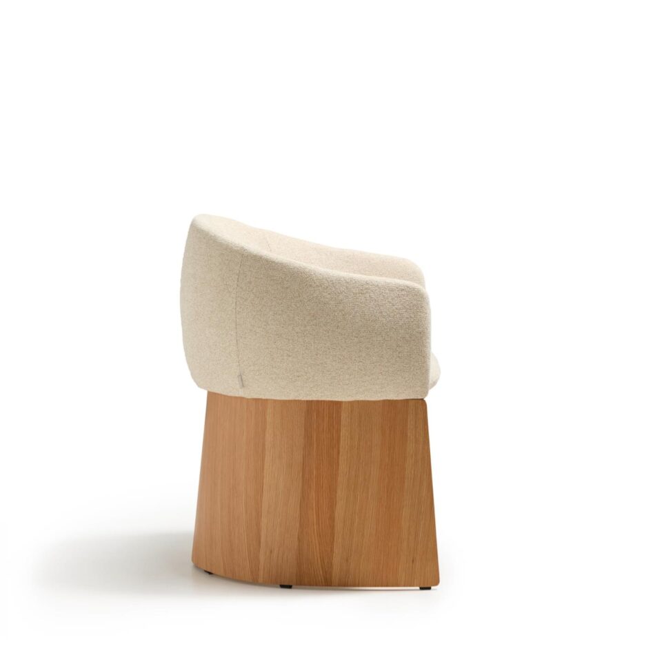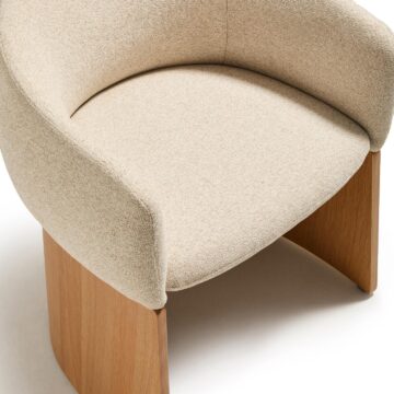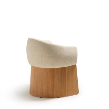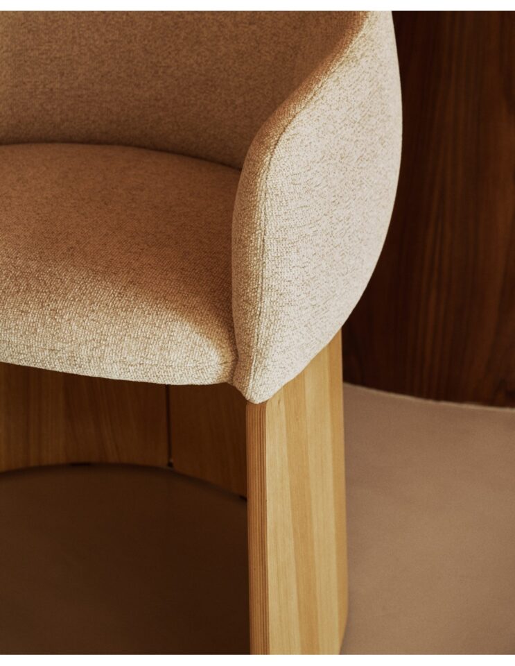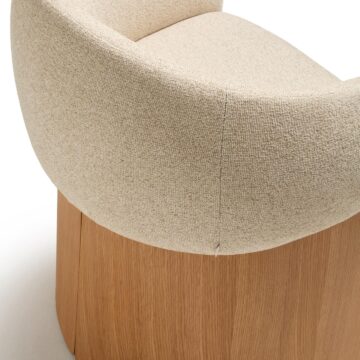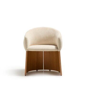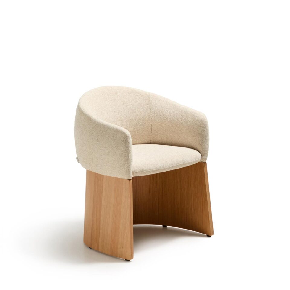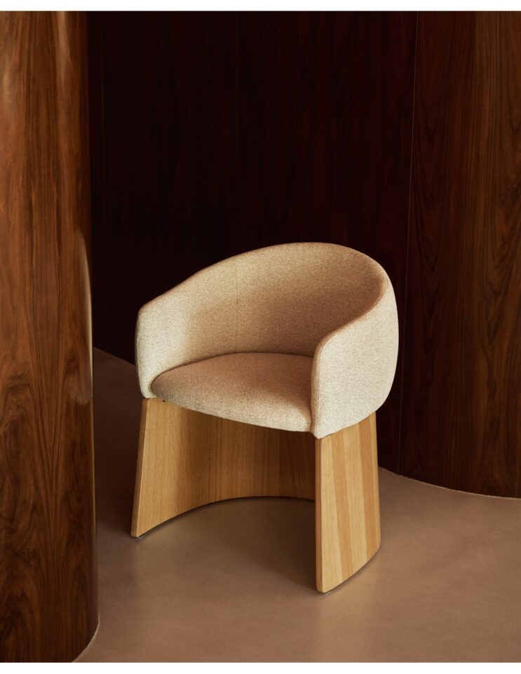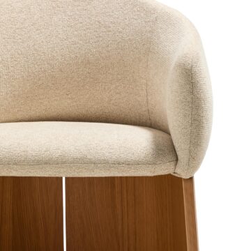 Oblikovno izrazit stol z mehko zaobljenimi, objemajočimi linijami in velikodušnimi proporci združuje volumen in lahkotnost ter funkcionalnost in estetsko izraznost. Široko, udobno sedišče ustvarja občutek sproščenosti, medtem ko različne izvedbe podnožja dodajo značaj, ne da bi zmanjšale vizualno lahkost. Tekstura oblazinjenja prostoru vnese toplino in vabljiv otip, zato vsak ambient postane prostor, kjer se dizajn ne le vidi, temveč tudi doživi. Stol je zasnovan za dolgotrajno uporabo tako v domačih kot tudi poslovnih prostorih.