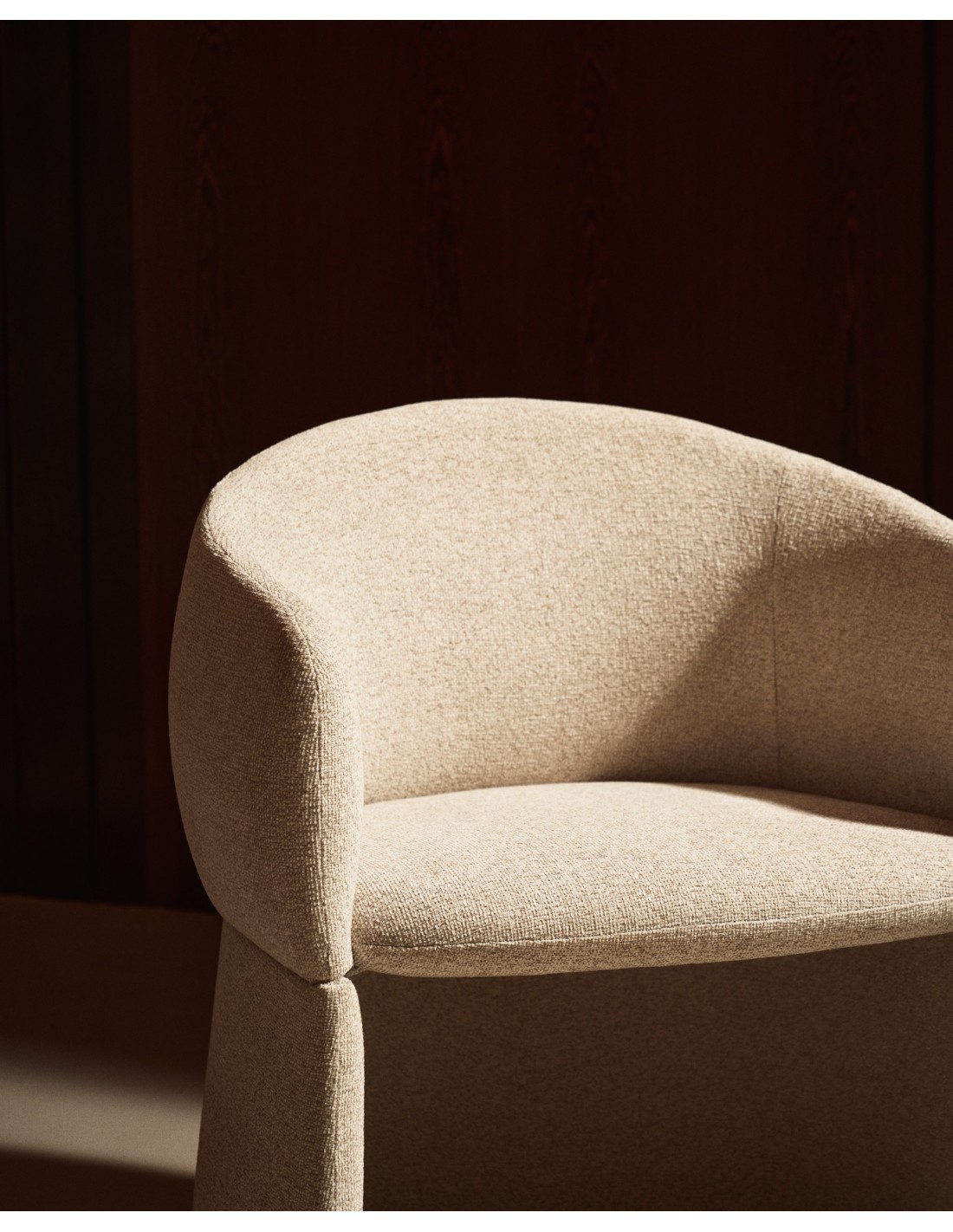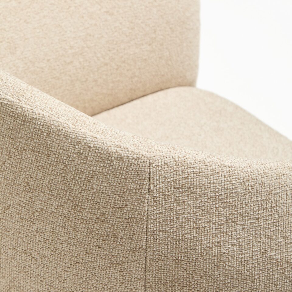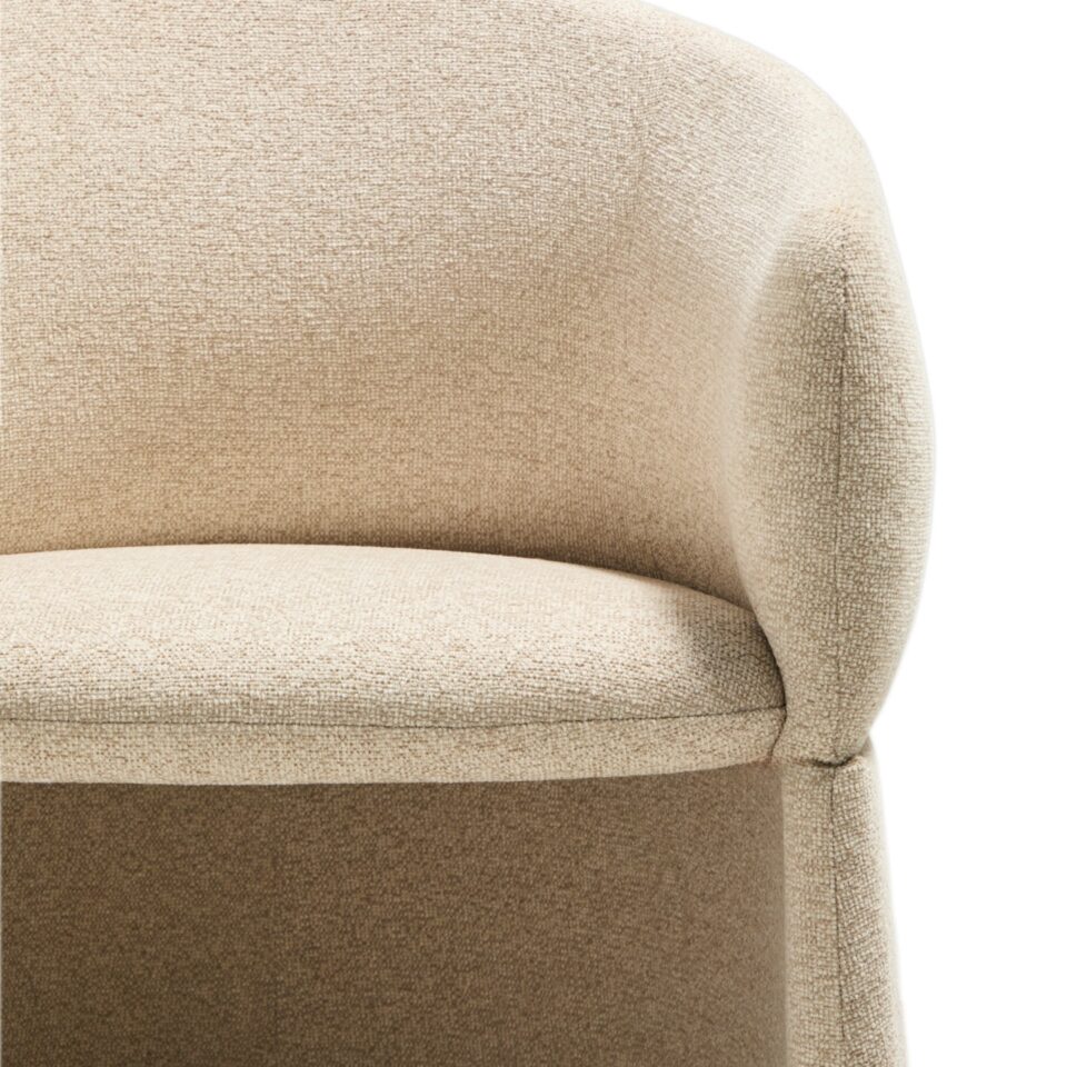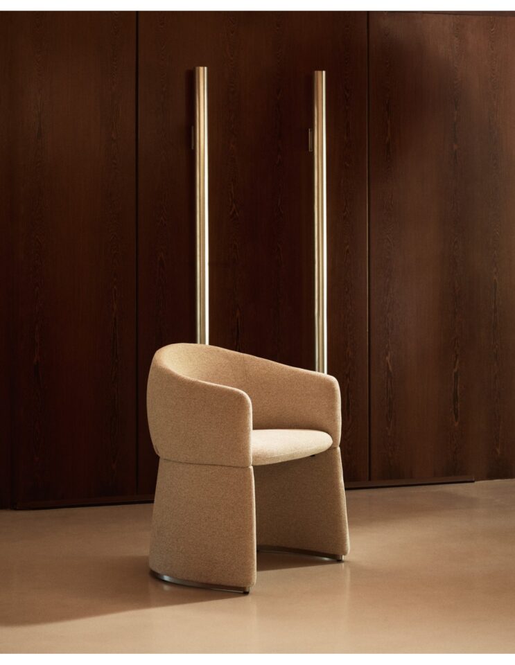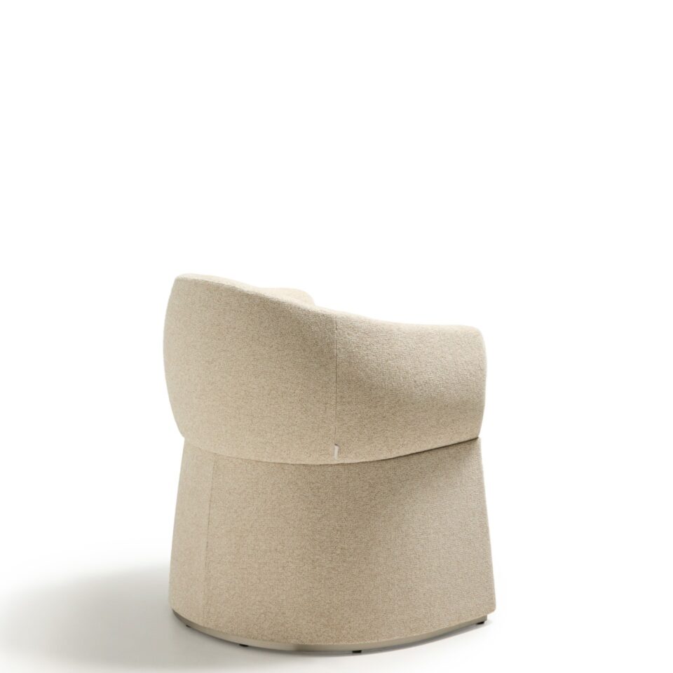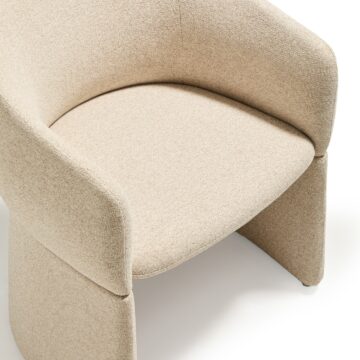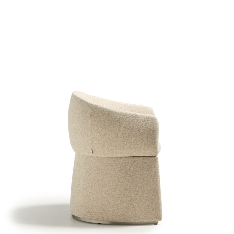 Oblikovno izrazit stol z mehko zaobljenimi, objemajočimi linijami in velikodušnimi proporci združuje volumen in lahkotnost ter funkcionalnost in estetsko izraznost. Široko, udobno sedišče ustvarja občutek sproščenosti, medtem ko različne izvedbe podnožja dodajo značaj, ne da bi zmanjšale vizualno lahkost. Tekstura oblazinjenja prostoru vnese toplino in vabljiv otip, zato vsak ambient postane prostor, kjer se dizajn ne le vidi, temveč tudi doživi. Stol je zasnovan za dolgotrajno uporabo tako v domačih kot tudi poslovnih prostorih.