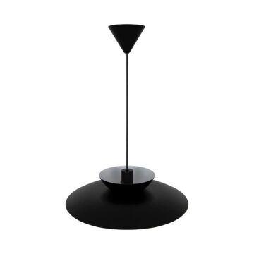 Črna viseča svetilka Carmen 45 je del družine CARMEN, ki združuje minimalističen in klasičen dizajn s prijetnimi okroglimi oblikami. Večplastne senčnike zagotavljajo mehko in brez bleščanja svetlobo, kar ustvarja popolno vzdušje nad jedilno mizo.