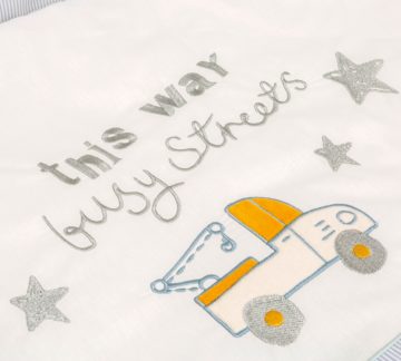 Posteljnina Cars Baby je narejena iz najboljšega bombaža in je sestavljena iz prevleke za vzmetnico, zaščitne ograje, pregrinjala, odeje, okrasne blazine in prevleke za vzglavnik. Nežni toni in okrasno vezenje ji dajejo poseben čar.
