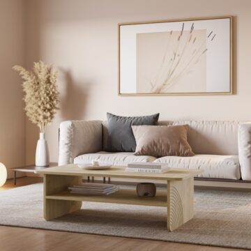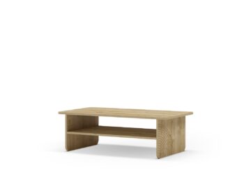 Klubska mizica Daira prinaša toplino naravnega dekorja hrasta v vašo dnevno sobo. Njegove zaobljene linije in praktična polica pod mizno ploščo ustvarjajo prijetno ravnovesje med estetiko in funkcionalnostjo.