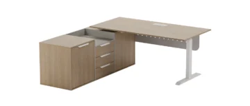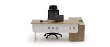 Direktorsko-managerska pisarniška nastavljiva kotna miza Fun združuje funkcionalnost, sodoben dizajn in ergonomske rešitve, kar jo postavlja med najboljše izbire za vodstvene pisarne. Miza omogoča prilagoditev višine in zagotavlja udobje za dolgotrajno delo, medtem ko premišljena kombinacija materialov in barv prispeva k profesionalnemu videzu delovnega prostora.