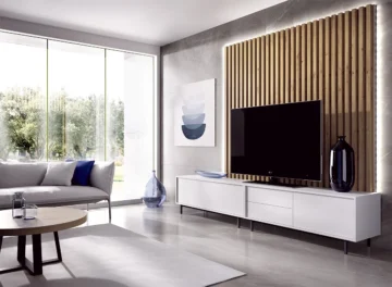 - TV modul z dvema predaloma in levimi vrati s push odpiranjem: Dimenzije Š 120 x V 45 x G 35 cm.