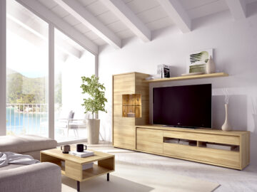 Dnevni sestav Compactos 80 ponuja odlično kombinacijo sodobnega dizajna in funkcionalnosti. Sestav vključuje TV modul, visoko vitrino z steklenimi vrati in stensko polico.
