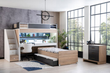 Dodatna postelja City je zasnovana kot popoln dodatek k postelji na kolesih City, kar omogoča še večjo prilagodljivost in funkcionalnost v otroških in mladinskih sobah. Ta dodatna postelja je idealna rešitev za družine, ki potrebujejo dodatno ležišče za goste, prijatelje, ki prespijo, ali za rastoče družinske člane, hkrati pa želijo ohraniti estetsko usklajenost in optimizirati prostor v sobi.