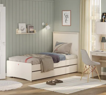 Z največjo nosilnostjo 130 kg in notranjo velikostjo vzmetnice 90×190 cm so spodnje postelje trpežne in jih je mogoč e uporabljati več let.
