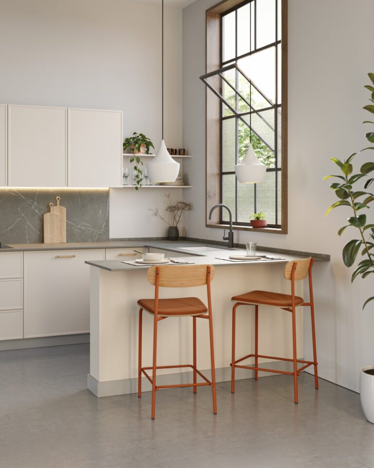 Dopultni barski stol ADRIANA združuje sodoben dizajn in udobje. Kovinska konstrukcija zagotavlja stabilnost, vezana plošča daje stolu elegantno obliko, oblazinjen sedež pa poskrbi za prijetno sedenje. Zaradi tankih linij in minimalističnega videza se stol odlično poda v jedilnice, kuhinje ali domače pisarne. Na voljo je v različnih barvnih kombinacijah, kar omogoča prilagoditev obstoječemu interierju.