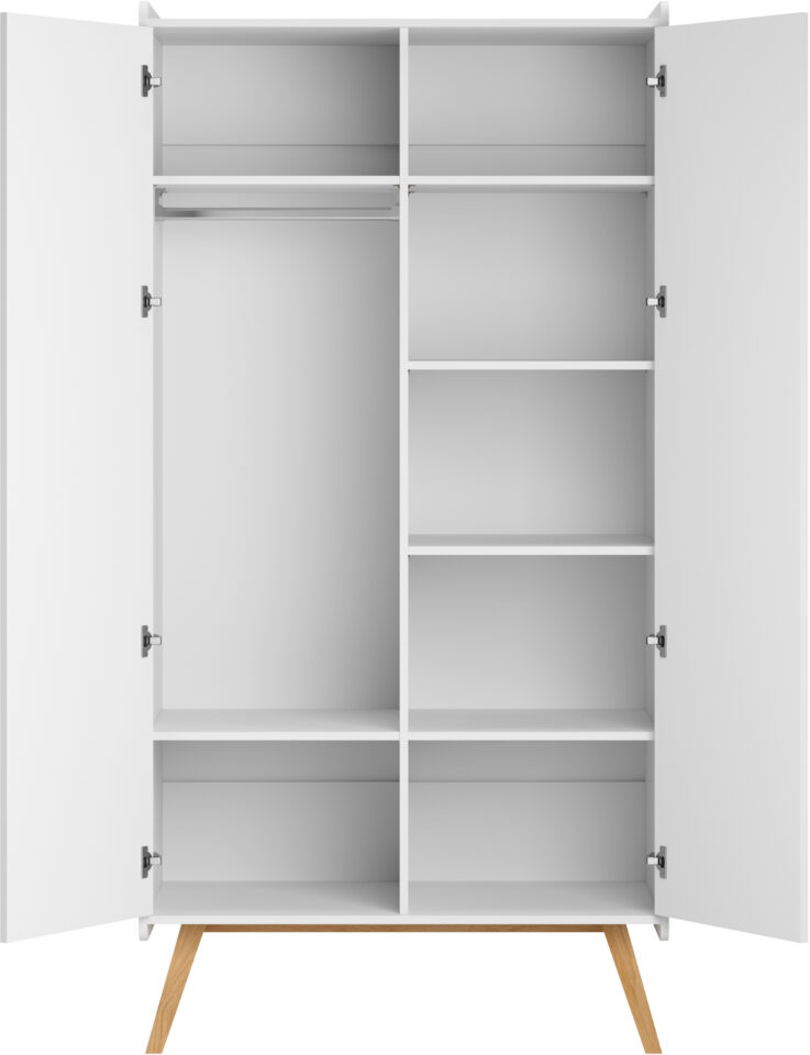 Dolge, poševno postavljene noge omari dajejo vizualno lahkotnost in hkrati omogočajo enostaven dostop do tal, kar olajša čiščenje otroške sobe. Preprosta retro zasnova je brezčasna in primerna za dolgotrajno uporabo. Pohištvo ustreza evropskim varnostnim standardom in normam.