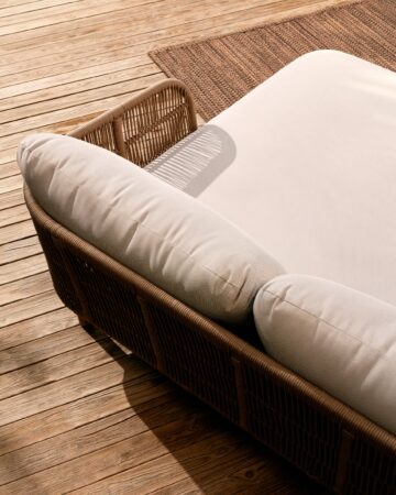 Prepustite se popolni sprostitvi in uživanju na prostem z dvojnim vrtnim ležalnikom Catalina. Ta eleganten in udoben ležalnik, zasnovan za dva, prinaša pridih mediteranskega šarma na vašo teraso, balkon ali k bazenu. Idealen je za lenarjenje v sončnih dneh, branje dobre knjige ali preprosto uživanje v miru in tišini.