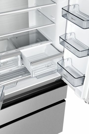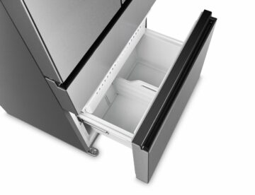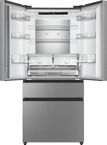 Dvovratni hladilnik s predalom NRM8181UX je samostojni hladilnik z zmogljivim in inovativnim dizajnom, težo 120 kg in dimenzijami 76,3 × 85,4 × 190 cm. Siva barva in eleganten videz omogočata, da se hladilnik zlije z vsako notranjostjo in postane nepogrešljiv del vašega gospodinjstva.