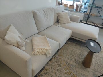 Trosed z desnim počivalnikom Galene v bež barvi – 254 cm se ponaša z dimenzijami 166 x 254 x 94 cm in natančnim ročnim delom, izdelan je s pomočjo obrtniških tehnik v Evropi. Uporablja polnilo iz reciklirane PET plastike, ki nudi udobje z učinkom perja.
