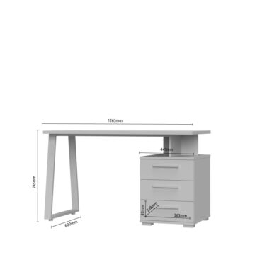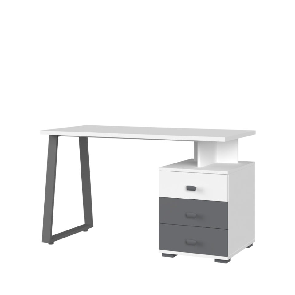 Funkcionalnost: Za vse, ki cenijo organiziranost in dodaten prostor za shranjevanje, miza vključuje vgrajen predalnik s prostornimi predali. Ti so kot nalašč za shranjevanje pisarniških potrebščin, dokumentov ali osebnih predmetov, kar omogoča čisto in urejeno delovno površino. Tehnične Značilnosti: Pisalna miza s stranicami debeline 18 mm je obdelana z UV lakom z mehkim mat efektom v beli barvi. Kovinska noga ne le dopolnjuje estetiko, ampak tudi zagotavlja dolgo življenjsko dobo in stabilnost mize. Predali imajo vgrajen mehanizem mehkega zapiranja.