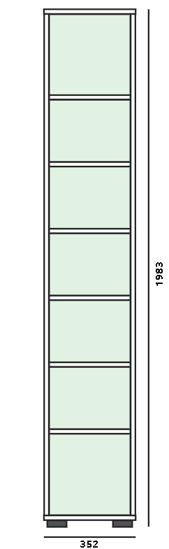 Funkcionalnost: Za vse, ki cenijo organiziranost in dodaten prostor za shranjevanje, poličnik vključuje šest polic, ki so kot nalašč za shranjevanje različnih predmetov. Njegova zasnova omogoča navpično montažo, kar poudari njegovo elegantno vertikalno obliko. Tehnične Značilnosti: Korpus poličnika debeline 18 mm je obdelan z UV lakom z mehkim mat efektom v beli barvi. Njegova zasnova daje edinstven estetski pridih. Poličnik je opremljen z nastavljivimi nogami, ki omogočajo enostavno izravnavo na neravnih površinah, kar zagotavlja stabilnost in trdnost.