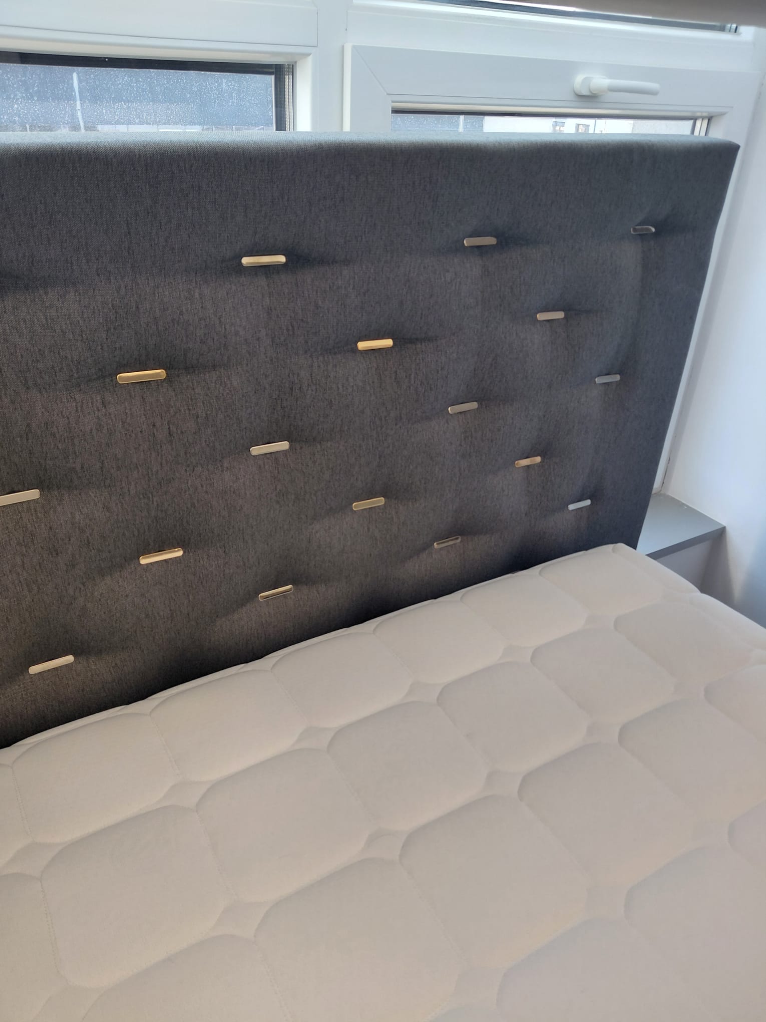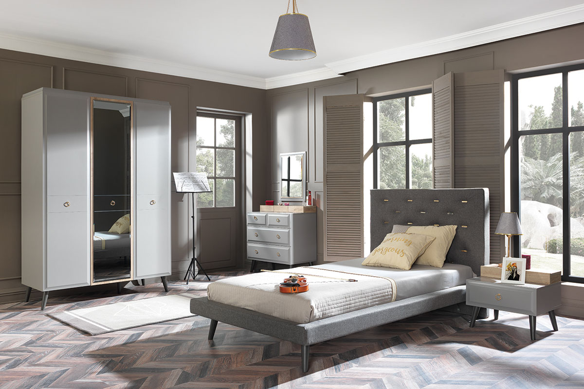 z dimenzijami 130x223x111 cm, namenjena vzmetnici velikosti 120 x 200 cm, je odlična izbira za vsako sodobno mladinsko sobo. Zasnovana je s kvalitetnim in lepo izdelanim vzglavjem iz tkanine, ki dodaja eleganco in udobje prostoru. Izdelana je iz kakovostne iverne plošče debeline 18 mm, kar zagotavlja trdnost in dolgotrajno uporabo. Ta postelja združuje estetiko in praktičnost, ponujajoč udobno in podporno ležišče za kakovosten spanec. Njen sodoben dizajn omogoča enostavno kombiniranje z drugim pohištvom iz kolekcije Moon ali s katerim koli drugim slogom notranje opreme. Postelja kolekcije Moon je idealna za ustvarjanje sproščujočega in stilsko dovršenega prostora, primerna tako za mladinske sobe kot za gostinske sobe ali manjše spalnice.