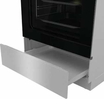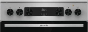 Štedilnik ima barvo česanega nerjavnega jekla in ergonomske gumbe, kar omogoča enostavno uporabo. Material čelne plošče je iz nerjavnega jekla, steklena vrata pa zagotavljajo preglednost med kuhanjem.