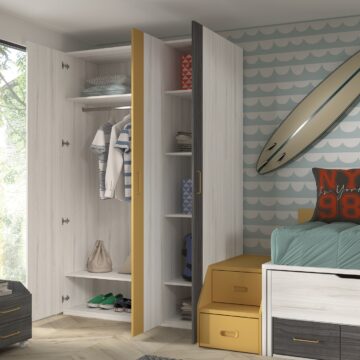 Sodobna in razgibana otroška in mladinska soba Compactos F015 z veliko shranjevalnega prostora. Pohištvo Compactos lahko prilagodimo po meri vašemu prostoru. Prav tako je dostava vključena v ceni.