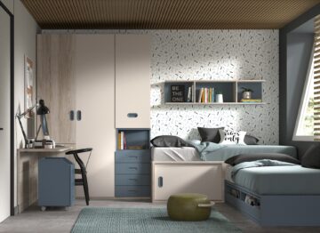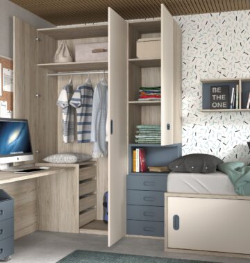 Sodobna otroška in mladinska soba Compactos F021 z dvema ločenima posteljama ne zavzema veliko prostora saj je načrtovana z mislijo za manjše prostore a kljub temu nudi veliko shranjevalnega prostora. Pohištvo Compactos lahko prilagodimo po meri vašemu prostoru. Prav tako je dostava vključena v ceni.
