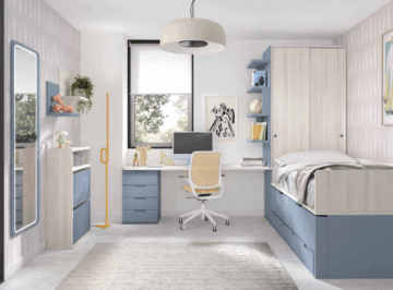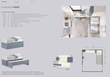 Otroške soba Compactos vas bo navdušila s svojo kvaliteto, izvirnostjo in možnostjo prilagajanja po meri. Elemente sestavov lahko med seboj kombinirate. Izbirate lahko med široko paleto barv in različnih ročajev. Pisalno mizo ali garderobno omaro lahko prilagodimo na centimeter natančno v kolikor imate težavo dobiti standardne mere v prostor. Pohištvo proizvaja eden od vodilnih španskih proizvajalcev otroškega pohištva. Uporablja melaminsko zaščito visoke kakovosti, ki je odporna zoper praskam in nezaželenim madežem. Vrata in predali se mehko zapirjo (izjema so tisti, ki so na koleščkih pod posteljo) . Debelina vseh front in korpusov garderobnih omar je 19 mm medtem, z izjemo dna in stropa omare, ki je 30 mm Prav tako je debelina vseh nosilnih delov postelj, pisalne mize in podpornih elementov 30 mm. Vsi robovi so 30 mm zaobljeni s tehniko post forming, za katero velja visoka odpornost in neviden rob. Slike so le inspiracija, ki jo kasneje mi prilagodimo vašemu prostoru. Pošljite nam mere vašega prostora in vam naredimo brezplačni 3D idejni izris, da vidimo kako gre vse skupaj v prostor. Pohištvo je delano z namenom, da traja. S proizvajalcem imamo res odlične izkušnje in verjamemo, da bo tudi vam všeč, kakor tudi mnogim do sedaj.