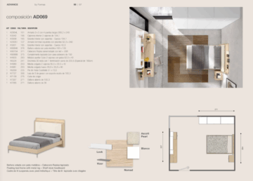 Potrebna dimenzija sestava Compactos 069 je v predelu garderobnih omar 270 cm, potrebna dolžina za postavitev pisalne mize je 237 cm ter postelje širina 204 cm z dolžino 212 cm