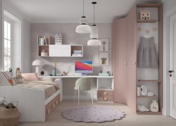 Otroška soba F105 so sanje vsake punce. Pohištvo Compactos lahko prilagodimo po meri vašemu prostoru. Prav tako je dostava vključena v ceni.