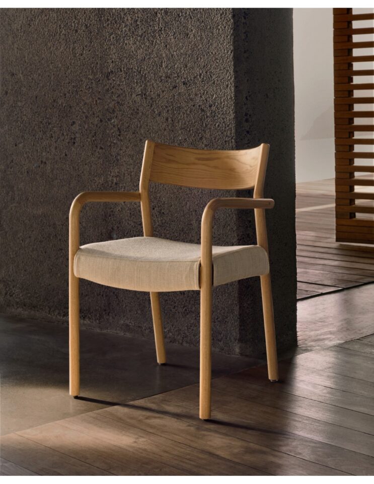 Falconera prinaša minimalistično oblikovanje, kjer preproste linije poudarjajo iskrenost materialov in čistost forme. Stol združuje toplino masivnega lesa in udobje mehko oblazinjenega sedeža, zato deluje umirjeno, elegantno in hkrati zelo funkcionalno. Chenille prevleka doda prijeten, sodoben videz ter prijetno teksturo, snemljiv sedežni del pa omogoča enostavno čiščenje in dolgotrajno uporabo. Konstrukcija iz hrastovine s FSC Mix Credit certifikatom potrjuje odgovorno izbiro lesa in zagotavlja stabilnost ter trajnost izdelka.
