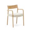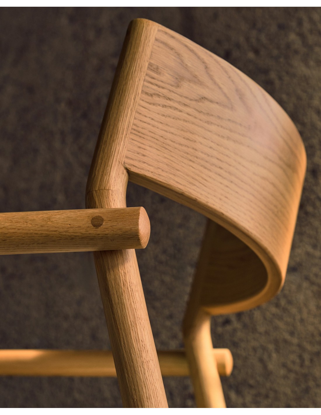 Falconera prinaša minimalistično oblikovanje, kjer preproste linije poudarjajo iskrenost materialov in čistost forme. Stol združuje toplino masivnega lesa in udobje mehko oblazinjenega sedeža, zato deluje umirjeno, elegantno in hkrati zelo funkcionalno. Chenille prevleka doda prijeten, sodoben videz ter prijetno teksturo, snemljiv sedežni del pa omogoča enostavno čiščenje in dolgotrajno uporabo. Konstrukcija iz hrastovine s FSC Mix Credit certifikatom potrjuje odgovorno izbiro lesa in zagotavlja stabilnost ter trajnost izdelka.