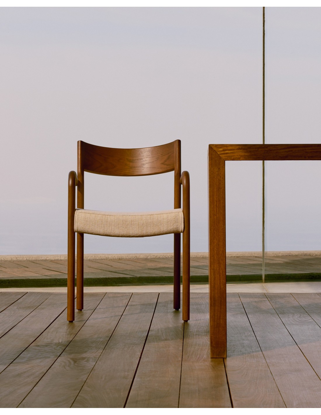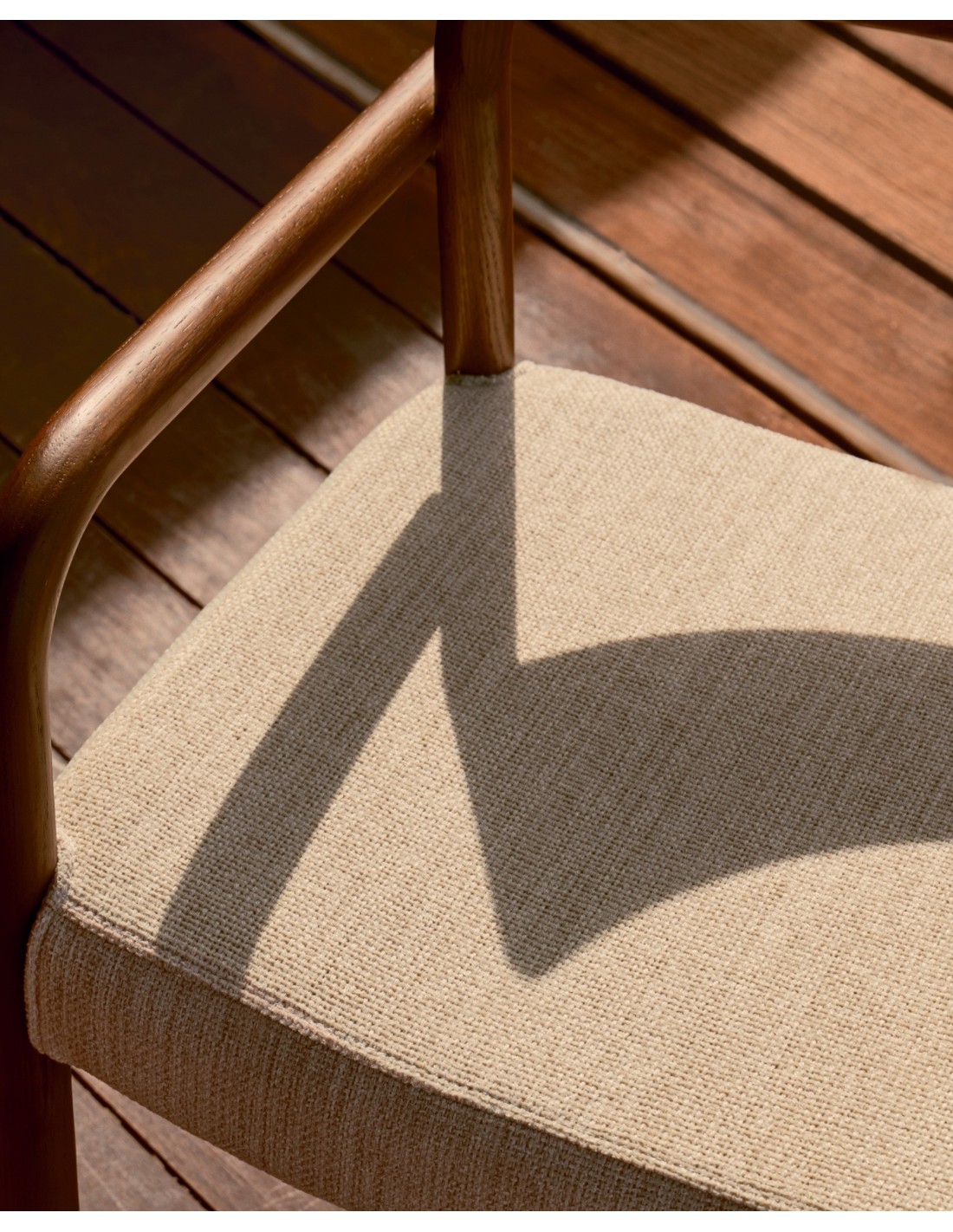 Falconera prinaša minimalistično oblikovanje, kjer preproste linije poudarjajo iskrenost materialov in čistost forme. Stol združuje toplino masivnega lesa in udobje mehko oblazinjenega sedeža, zato deluje umirjeno, elegantno in hkrati zelo funkcionalno. Chenille prevleka doda prijeten, sodoben videz ter prijetno teksturo, snemljiv sedežni del pa omogoča enostavno čiščenje in dolgotrajno uporabo. Konstrukcija iz hrastovine s FSC Mix Credit certifikatom potrjuje odgovorno izbiro lesa in zagotavlja stabilnost ter trajnost izdelka.