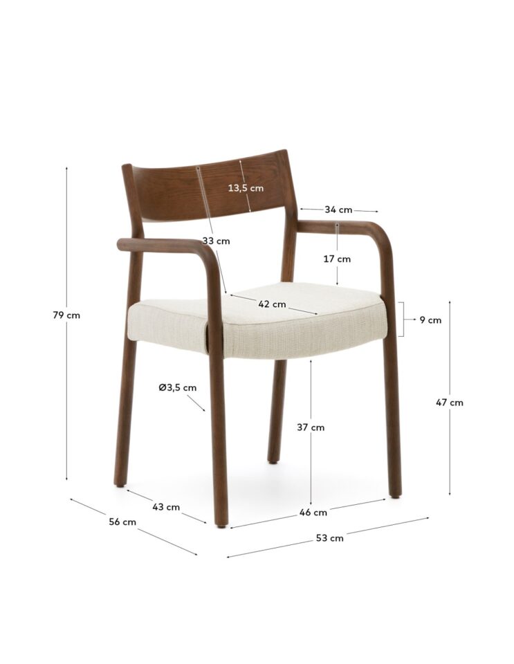 Višina 79 cm | Širina 53 cm | Globina 56 cm | Teža 5,6 kg | Višina nog 37 cm | Višina sedeža 47 cm | Širina sedeža 46 cm | Globina sedeža 42 cm | Višina naslonjal za roke 64 cm | Širina naslonjal 3,5 cm | Višina naslona 33 cm | Širina naslona 46 cm | Toleranca mer ±2 cm