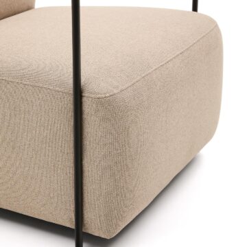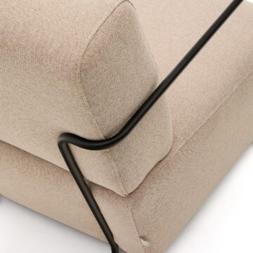 Fotelj Gamer v bež barvi je zasnovan z mislijo na estetiko in funkcionalnost. Njegov tanek jeklen okvir z elegantnim črnim zaključkom dopolnjuje oblazinjenje iz bež tkanine, ki daje prostoru svežino in živahnost.